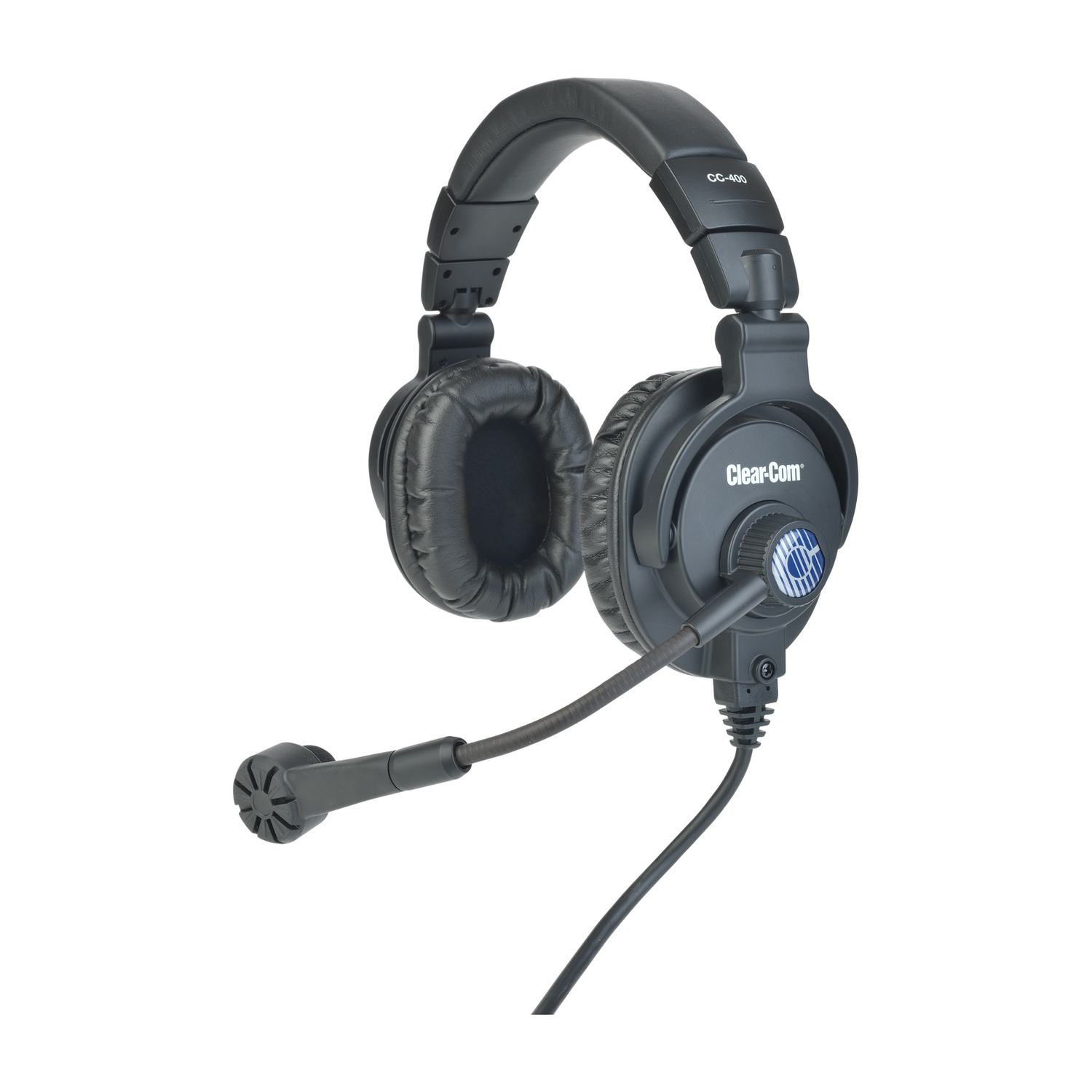Clear-Com headset with high ambient-noise attenuation headphones and hyper-cardioid dynamic micropho